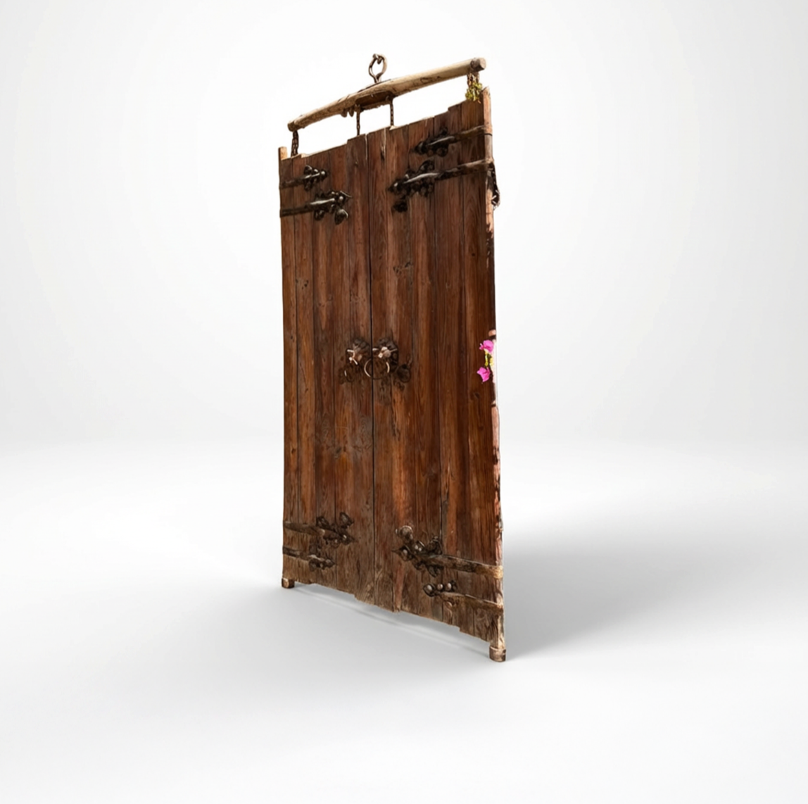 An exquisite, one-of-a-kind antique Indian door, handcrafted by master artisans and imported directly from the heart of India. Featuring elaborate metalwork, time-worn wood, and soulful carvings, this piece carries the whispers of centuries—blending sacred tradition with timeless grandeur.